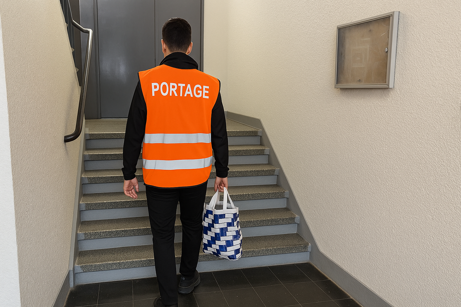 - Nous informons les résidents du service de portage mis en place avec une affiche par le porteur.